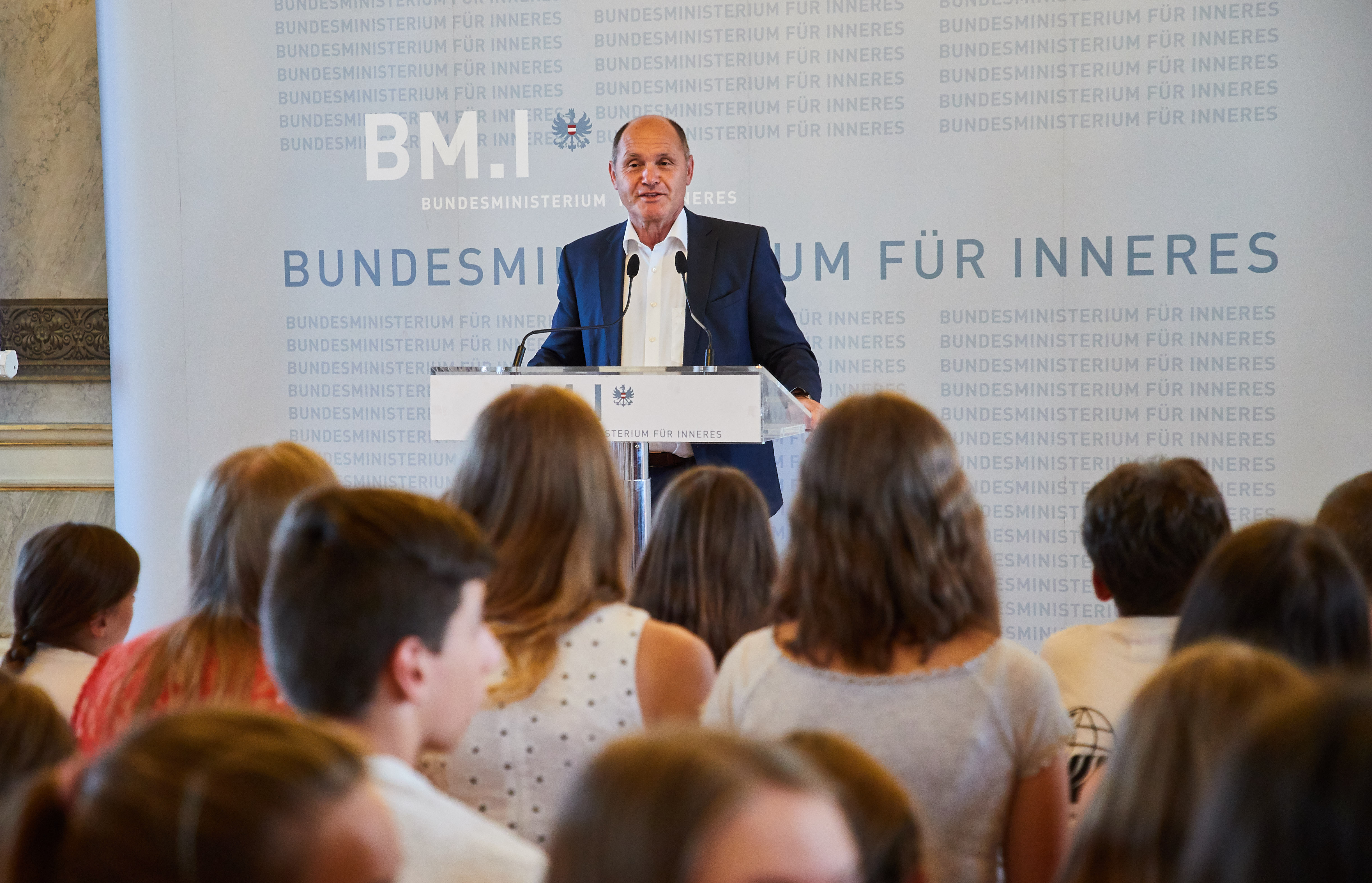 Innenminister Gerhard Karner: "Mit der Aktion setzen wir ein klares Zeichen gegen Gewalt an Frauen und Kindern und möchten zur Sensibilisierung beitragen. Mit dem richtigen Verhalten kann ein wesentlicher Beitrag zur Sicherheit für alle geleistet werden."